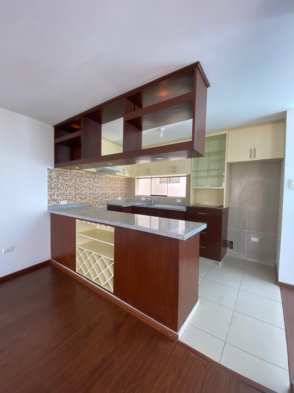 Cocina amplia con reposteros altos y bajos